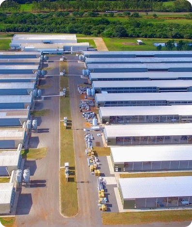 Estruturas desenvolvidas para atender as demandas específicas do setor agroindustrial: unidades de apoio, armazenagem e edificações produtivas com foco em funcionalidade, resistência e segurança.